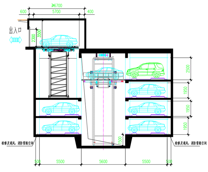 4、 到位后,纵向存取车装置开始动作,将车移到指定位置后停止。